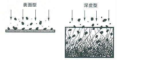 一深度過濾:將顆粒捕捉于濾材深層中,而不只是表面的過濾。此種濾材多由纖維構(gòu)成,如纖維燒結(jié)濾材、樹脂燒結(jié)濾材。
